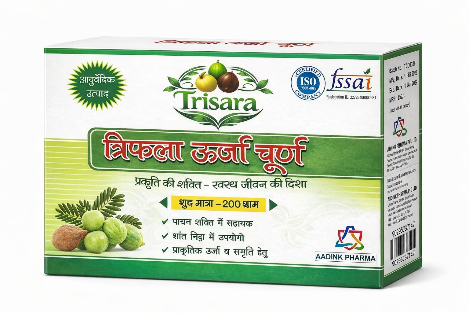 Prepared using high-quality herbal ingredients, Trisara Triphala Urja Churna is suitable for those looking for a natural Ayurvedic supplement to support daily health and digestive balance.